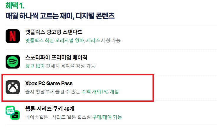 넷플릭스 광고형 스탠다드, Xbox PC Game Pass, 네이버 웹툰 및 시리즈 쿠키