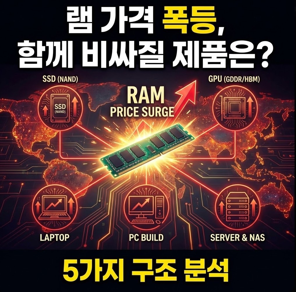 램 가격이 오른다고 해서 모든 PC 부품이 동시에 폭등하는 구조는 아닙니다. 다만 다음과 같이 구분할 수 있습니다.
