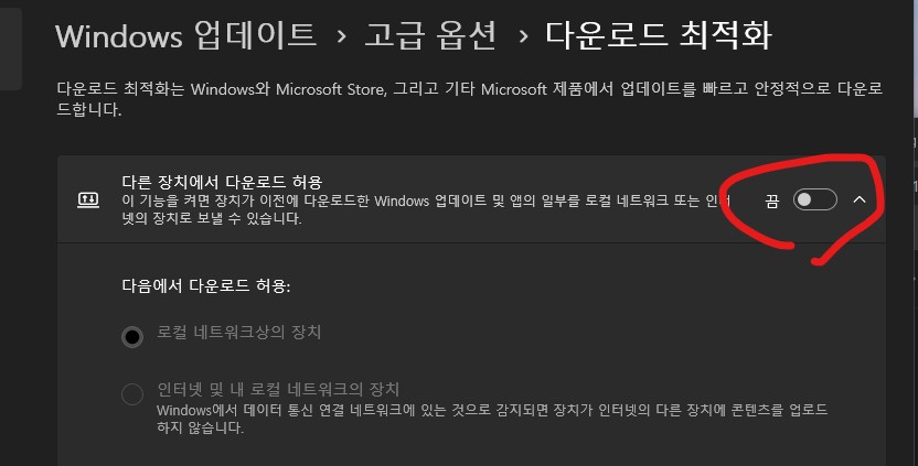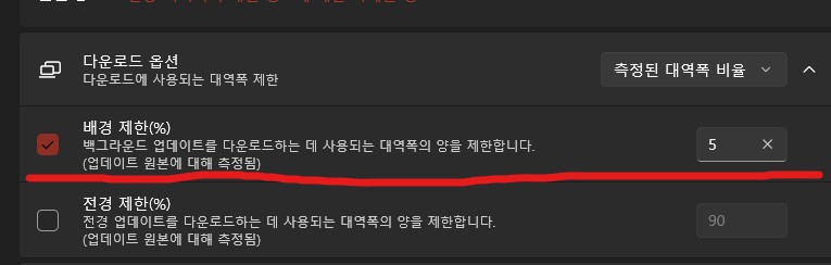 - 다운로드 대역폭을 5% ~ 10% 수준으로 제한
