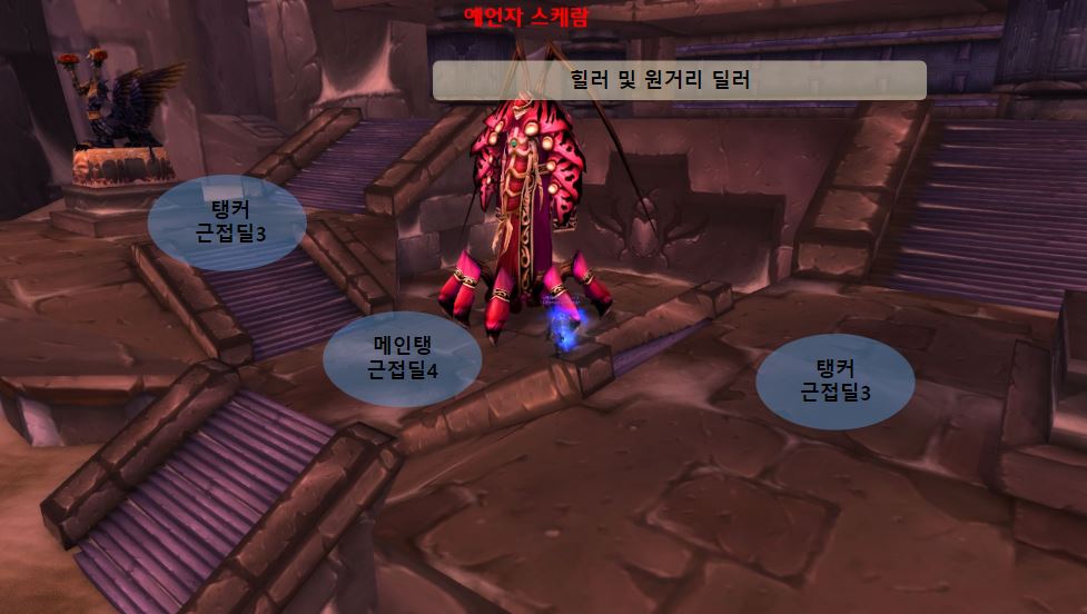 - 탱 또는 근접이 스케람 근처에만 있으면 피해 없음