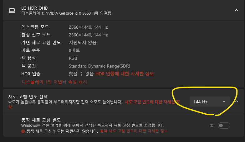 144Hz 지원 여부 확인해야 함