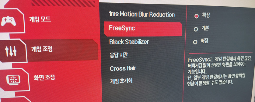 - 모니터 OSD에서도 Adaptive Sync ON 확인