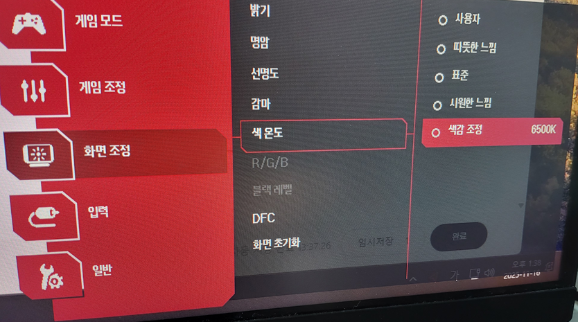 10. 색공간 설정 (sRGB / DCI-P3), 게임 장르에 따라 선택