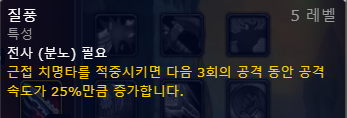 다음 12회 근접 공격에 한해 25% 공격력 보너스를 받게 되는 특성인데