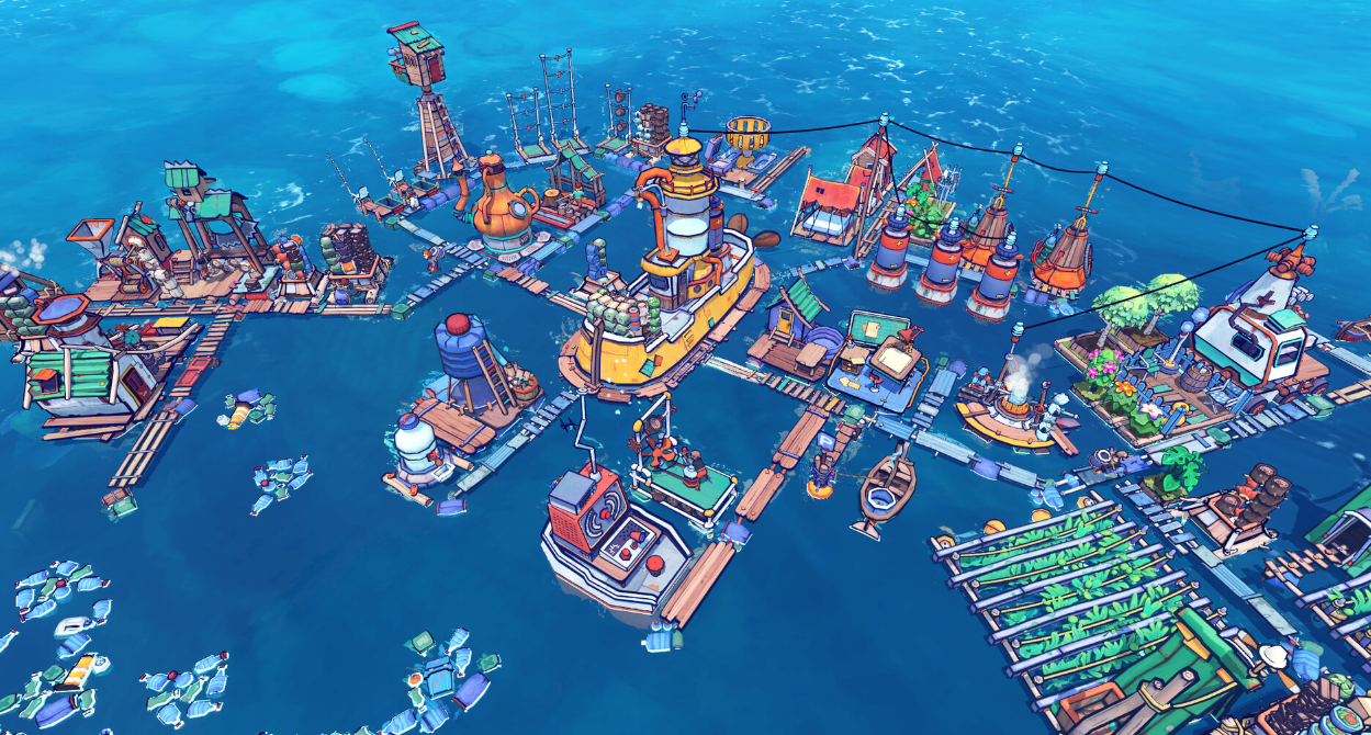 바다에 떠다니는 쓰레기를 수집해 부유 도시를 건설하는 게임