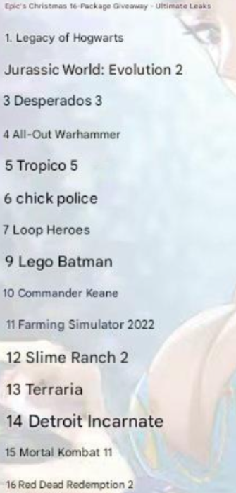 2020년 12월에는 에픽게임즈 연말 무료게임 15종 전체가 사전에 유출된 사례가 있었습니다.