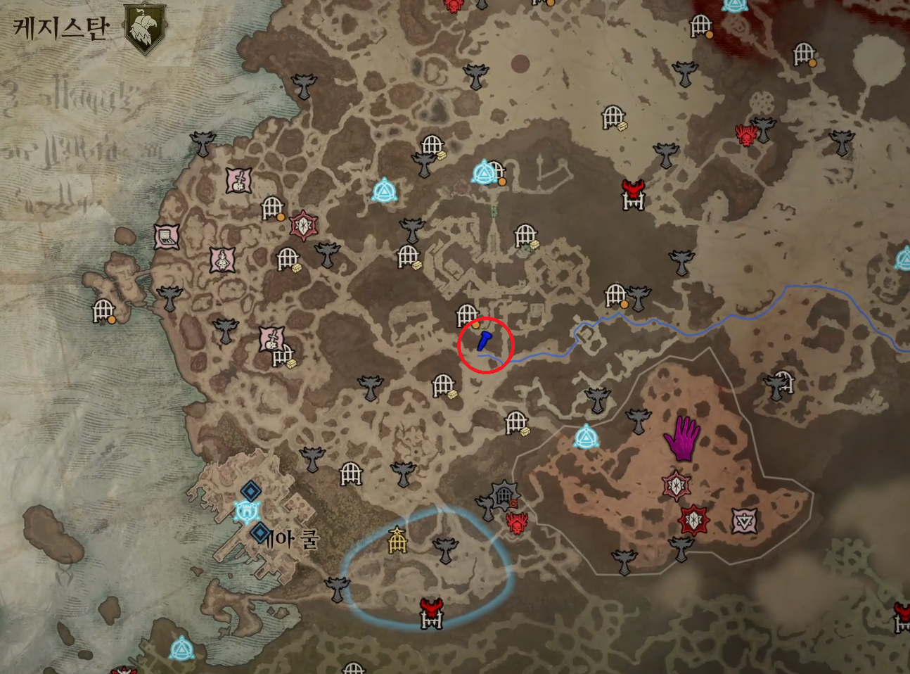 | 정화된 두리엘의 뿔 | 고통의 제단 | 케지스탄 '덴샤르' 10시 방향 |