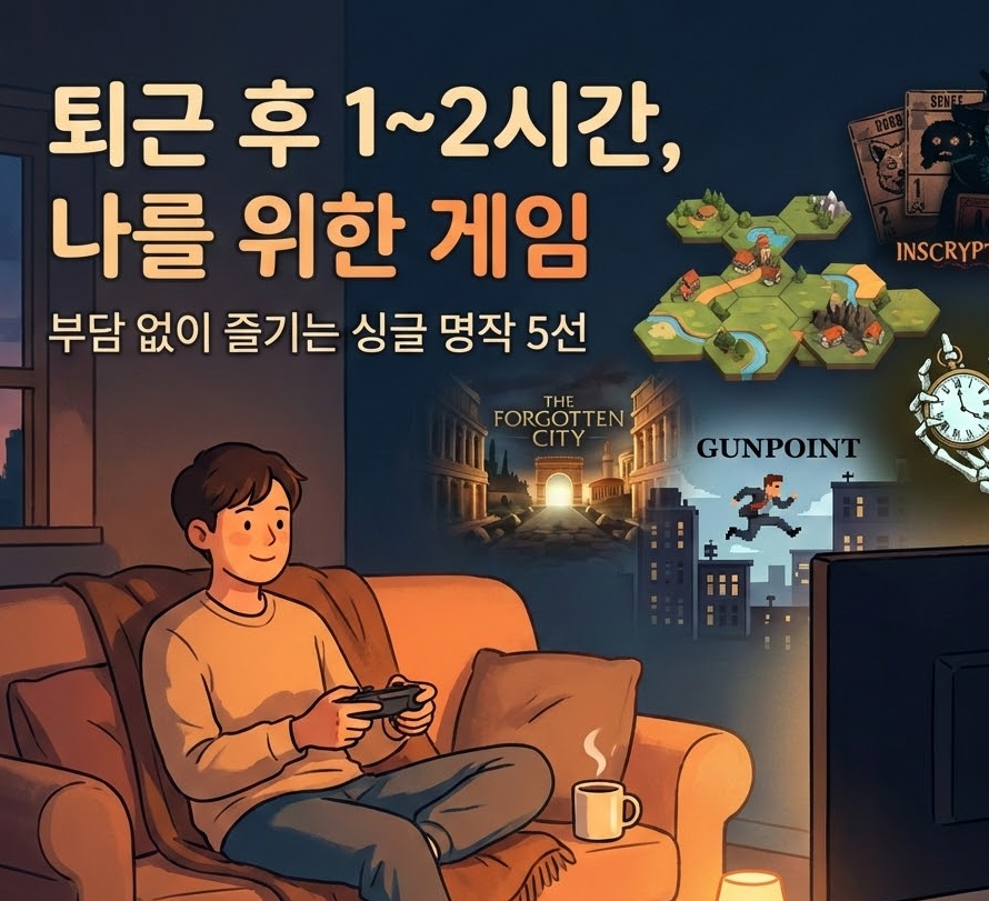 하루 1~2시간 플레이에 실제로 잘 맞는 싱글 게임 위주로 골랐습니다.