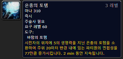 대지토템(힘), 은총토템(민첩), 질풍토템(추가타)/ (파티 적용)