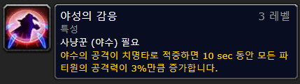 야성의 감응(파티 적용) - 공격력 3% 증가 (중복 가능)